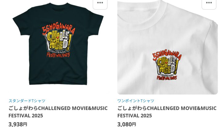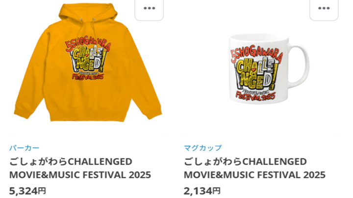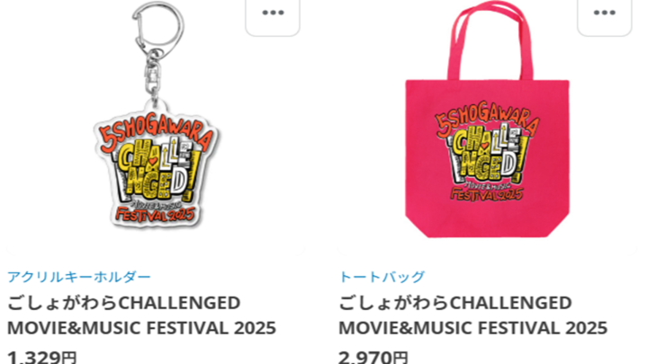 資金調達のため、今年のごしょがわら Challenged Movie&Music FESTIVAL 2025のグッズを作り、販売しています。